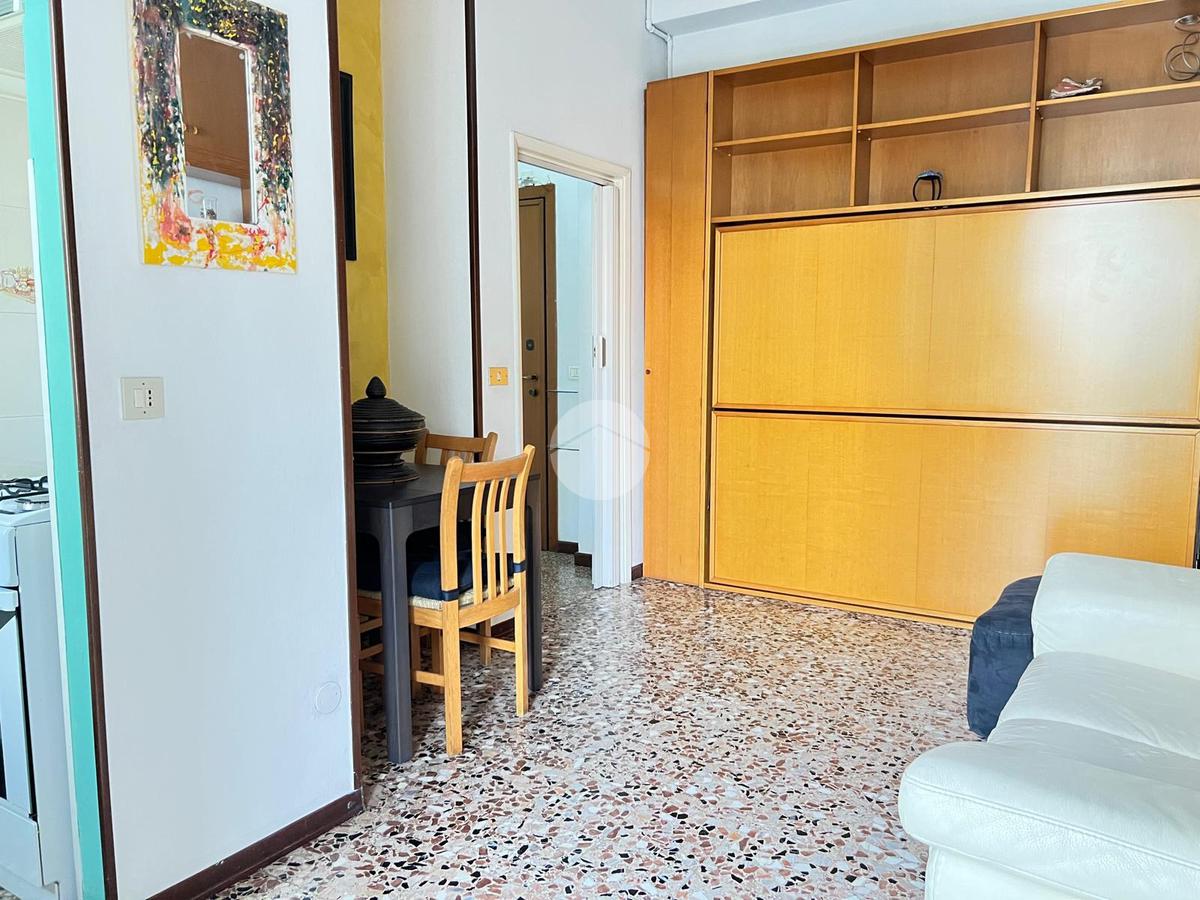 L'appartamento, arredato e pronto per essere abitato, offre un ingresso che conduce a un luminoso soggiorno con cucinotto. La zona notte comprende una camera da letto confortevole e un bagno finestrato. Un balcone completa la proprietà, offrendo uno spazio esterno privato.
