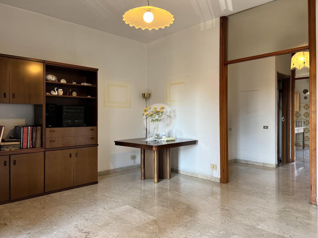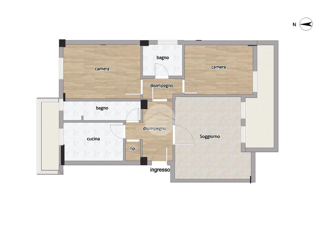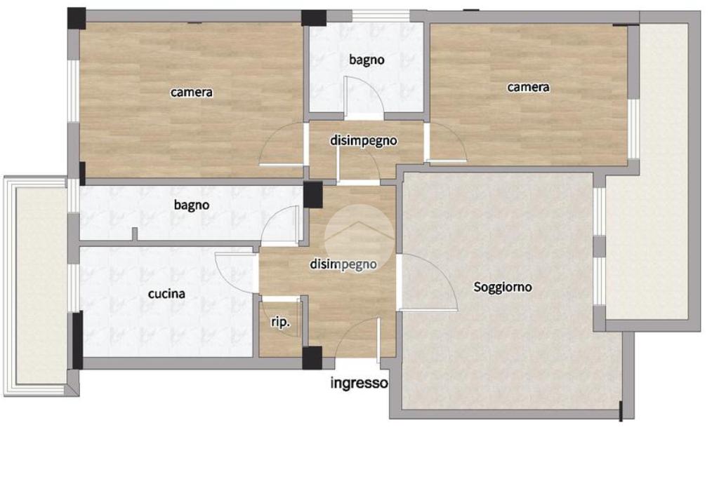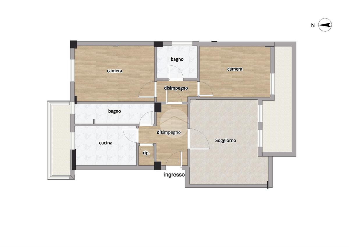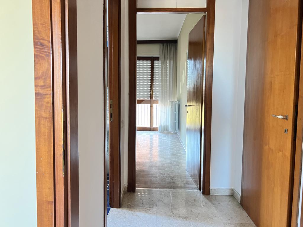 L'appartamento offre un ampio ingresso che conduce ad un soggiorno spazioso e luminoso, ideale per momenti di relax, con accesso al primo ampio balcone. La cucina è abitabile, perfetta per chi ama cucinare e condividere pasti in famiglia ed è servita dal secondo balcone. La zona notte comprende due camere da letto. Sono presenti doppi servizi, entrambi finestrati, che offrono praticità e funzionalità. Un comodo ripostiglio per fornire ulteriore spazio per l'organizzazione domestica.