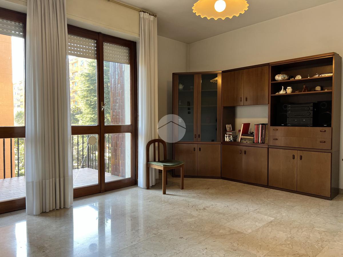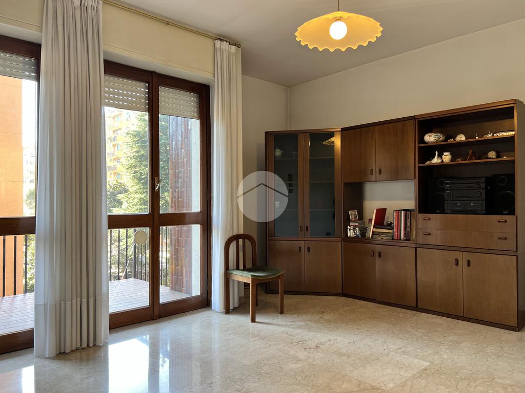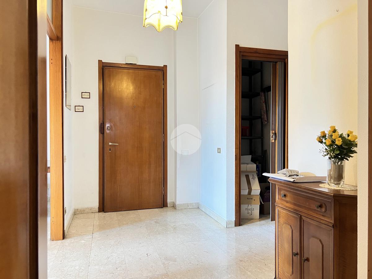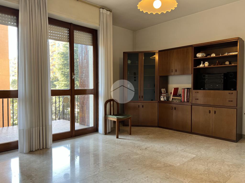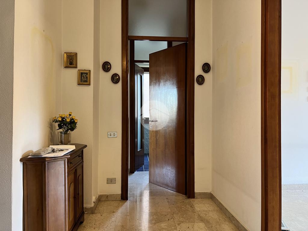 L'appartamento offre un ampio ingresso che conduce ad un soggiorno spazioso e luminoso, ideale per momenti di relax, con accesso al primo ampio balcone. La cucina è abitabile, perfetta per chi ama cucinare e condividere pasti in famiglia ed è servita dal secondo balcone. La zona notte comprende due camere da letto. Sono presenti doppi servizi, entrambi finestrati, che offrono praticità e funzionalità. Un comodo ripostiglio per fornire ulteriore spazio per l'organizzazione domestica.